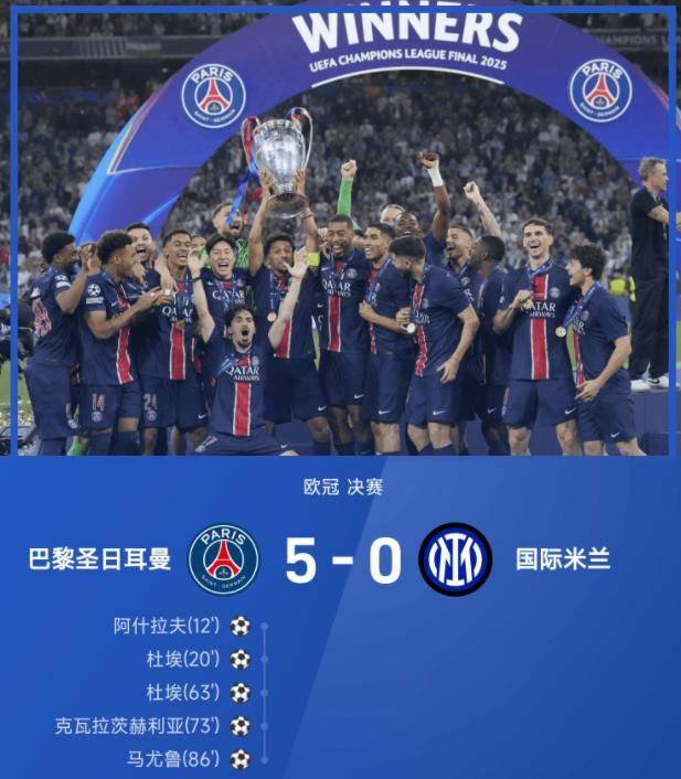 在刚刚落下帷幕的欧冠决赛中,巴黎圣日耳曼以令人瞩目的5-0战胜国际米兰,首次捧得俱乐部历史上的欧冠奖杯。这场比赛创造了近年来欧冠决赛最大分差的纪录,对于巴黎而言,这场胜利意义非凡,不仅是他们的首个欧冠冠军,更标志着球队在本赛季完成了三冠王的目标。