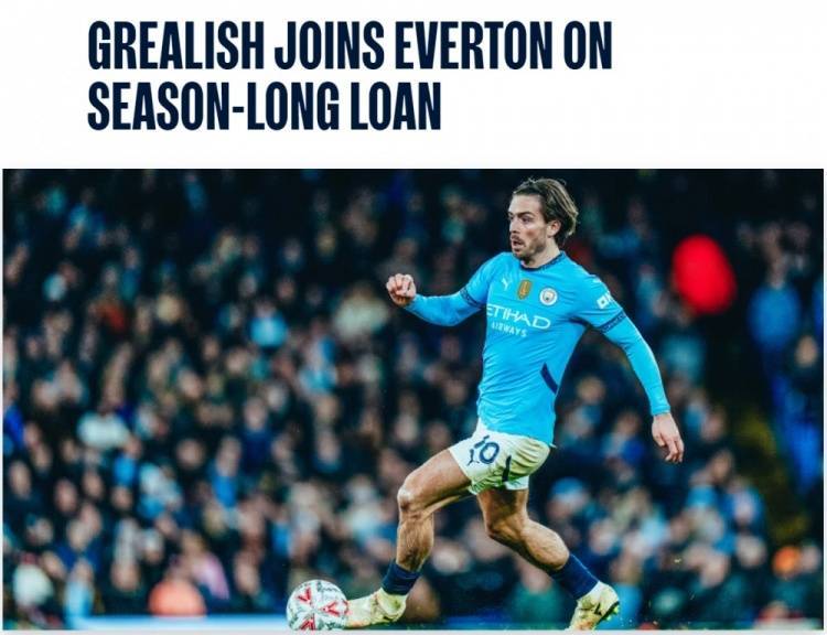 直播吧8月12日讯 曼城官网消息,格拉利什租借加盟埃弗顿,开启新赛季征程。